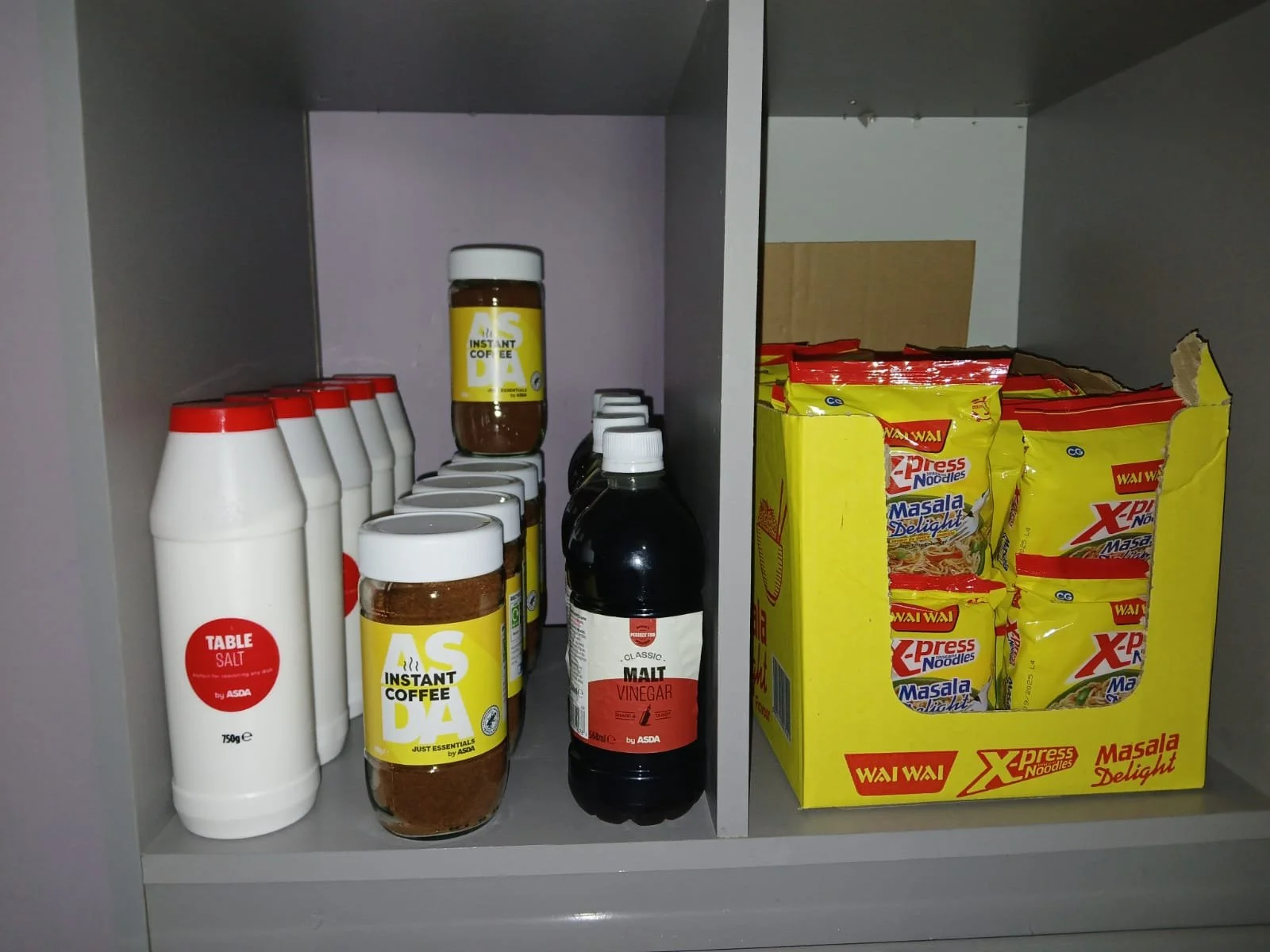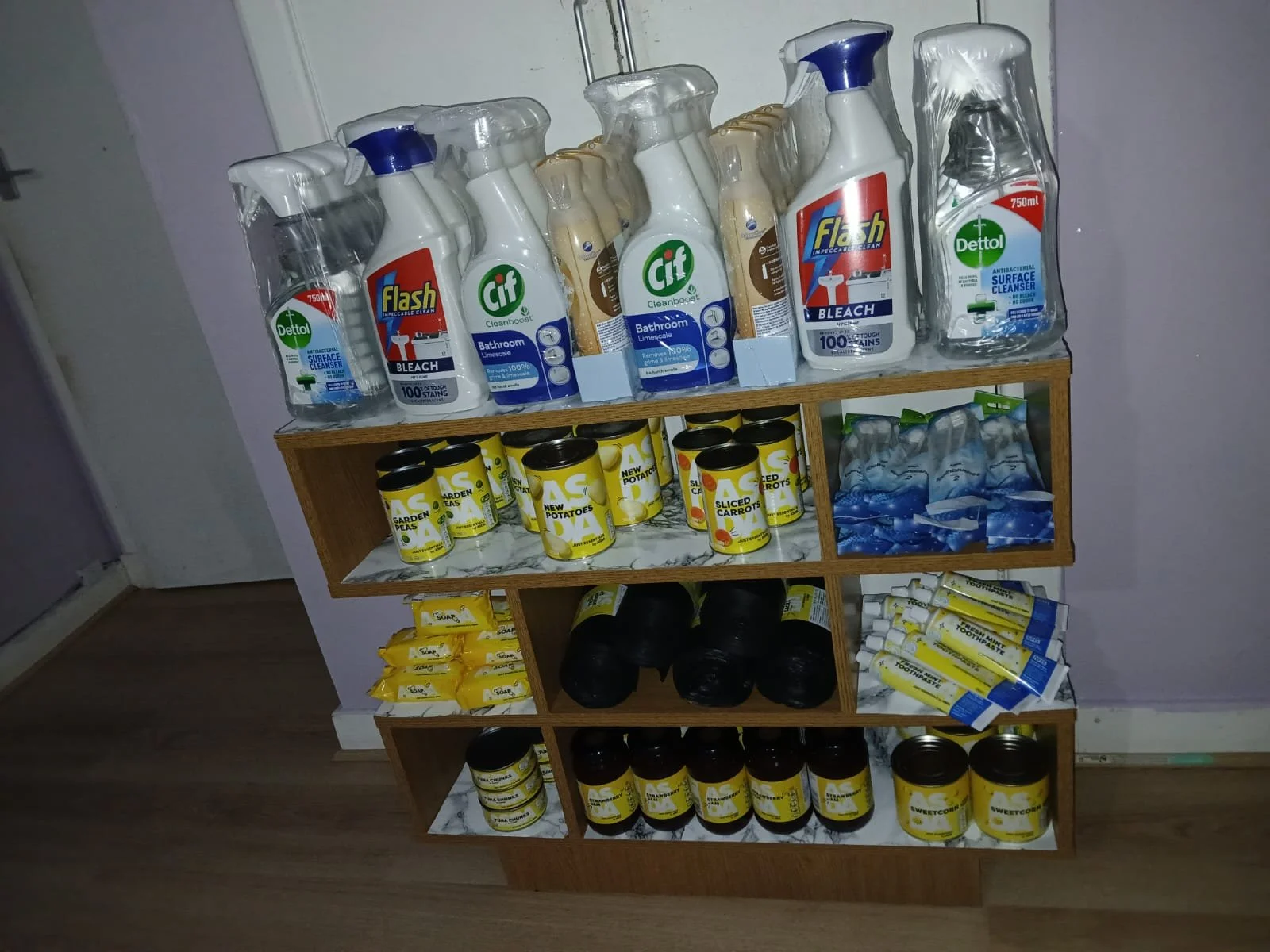 bread, fruits, vegetables, tinned food as well as items in the fridge and chest freezer.
